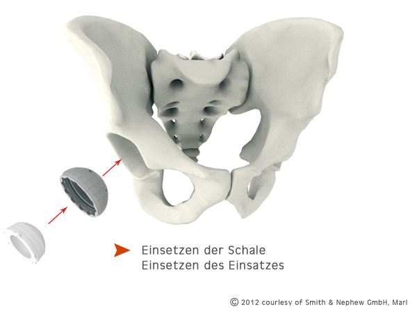 Bewährt haben sich hier unter anderem das Einsetzen mit einem speziellen Knochenzement, das Einpressen oder das Einschrauben.Welches die ideale Methode ist, hängt von der Art Ihrer Prothese ab und wird vom Arzt schon vor der Operation festgelegt. In die neue Hüftgelenkspfanne kommen jetzt nur noch Pfanneneinsätze aus Polyethylen, Metall oder Keramik, um die optimale Beweglichkeit des Gelenks zu garantieren.